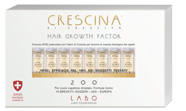 Certo, Crescina non fa miracoli – non agisce sui follicoli completamente atrofizzati, è un trattamento indicato nei casi di diradamento dipendente da cause fisiologiche – ma nelle sue diverse formulazioni (qui sotto l’immagine della nuova Crescina Hair Growth Factor) sicuramente rappresenta un più che valido aiuto – per noi uomini, ma anche per le donne – per affrontare al meglio cambi di stagione, stress e invecchiamento del cuoio capelluto.