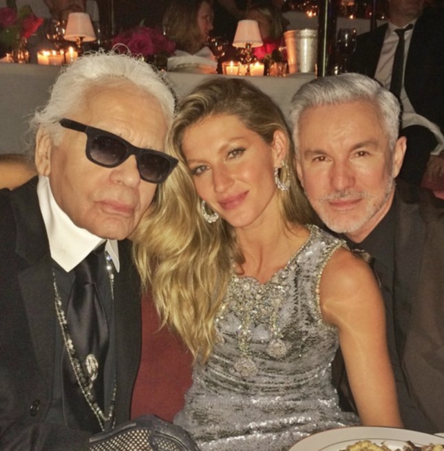 Nella foto Gisele con Karl Lagerfeld e il regista Baz Luhrmann.