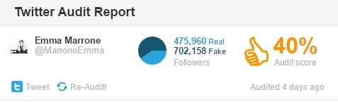 Bisogna notare però, a favore degli artisti che Twitteraudit valuta i profili in base alla loro attività online: quindi è possibile che valuti un account come falso anche se è solamente non attivo da un pò di tempo.