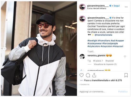 Giovanni Masiero stiloso e sensuale detta la moda dell’inverno 2019. Sportivo, modello e influencer, Giovanni Masiero – classe 85 – unisce la passione per il wellness a quella per la moda e sfoggia con eleganza le sue lenti Transitions, raccontandole agli oltre 200mila follower del suo profilo Instagram.