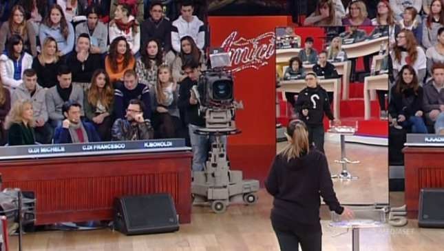 Amici 2013, piccola scena da professore e preside della scuola più talentuosa d’Italia. Stiamo parlando di Grazia Di Michele, storica professoressa della scuola di Amici e Maria De Filippi. I fati sono questi. Maglia nera per la cantante Deborah che secondo la Di Michele a quella splendida voce non corrisponde un’altrettanta compostezza, linearità nei movimenti. Insomma, questa Debora il fisico perfetto non ce l’ha. E chi ce l’ha a vent’anni ? La giovane cantante è consapevole del suo corpo e accetta, tra le lacrime, la maglia nera. Durante il live di sabato pomeriggio la “scenetta” assurda va in onda… La Di Michele mette alla prova la povera Debora facendola candare davanti ad uno specchio, seduta su uno sgabello o invitando il pubblico ad ascoltarla prima ad occhi chiusi e poi ad occhi aperti. “Ciò che sto facendo non è per offenderti”, se ne è uscita la Di Michele “Ma solo per farti prendere più sicurezza sulla tua fisicità. In effetti sei stata tu la prima a dirmi che non ti piaci”. Insomma, cose dell’altro mondo ! Amici non sa più dove andare a parare per arricchire il programma e creare polemiche. Ma a tutto questo Maria De Filippi si è ribellata “Queste sono cose che non stanno nè in cielo nè in terra. Io un cantante lo ascolto non lo guardo. Lo scelgo con l’orecchio e non con la vista. E poi, chi a vent’anni si piace in toto ? Pensa che io ancora oggi non mi piaccio e quando lavoro lo faccio sempre senza monitor proprio perchè altrimenti mi imbarazzerei”.