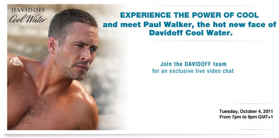 Menchic.it, il blog di lifestyle maschile che ci guida nella moda e nei must have di stagione intervista in esclusiva per l’Italia Paul Walker, il bellissimo attore nuovo testimonial della fragranza Davidoff Cool Water.L’appuntamento è fissato per il 4 attobre prossimo. L’intervista video e tutte le curiosità le potrete leggere su Menchic a partire dal giorno successivo. Anche noi di Tuttouomini.it seguiremo l’evento (a distanza purtroppo) cercando di riproporvi l’intervista con link e, se possibile, immagini di Paul Walker.