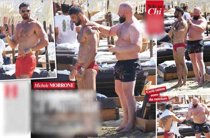 Morrone è in vacanza a Mykonos e il magazine CHi lo ha paparazzato insieme ad un amico in spiaggia. E fin qui niente di strano! Ciò che ci ha fatto, come dire, sognare un po’, è il fatto che questo amico si è prodigato con cura e delicatezza nello spalmare la crema sulla schiena dell’attore nel tentativo di proteggerli i tatuaggi dai raggi del sole.