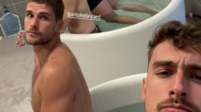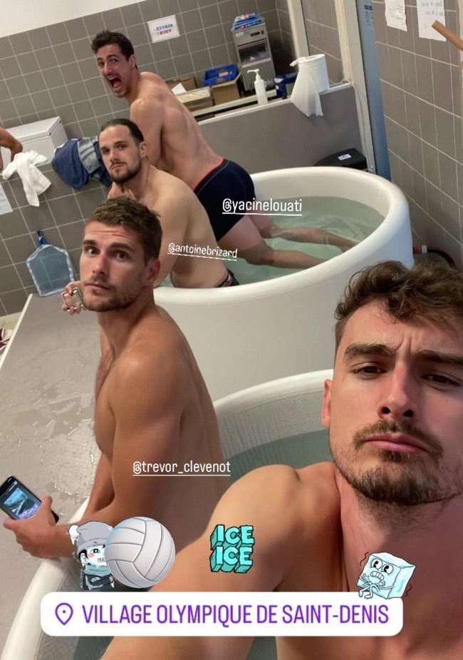 Nell’idromassaggio con i giocatori francesi della pallavolo prima della partita