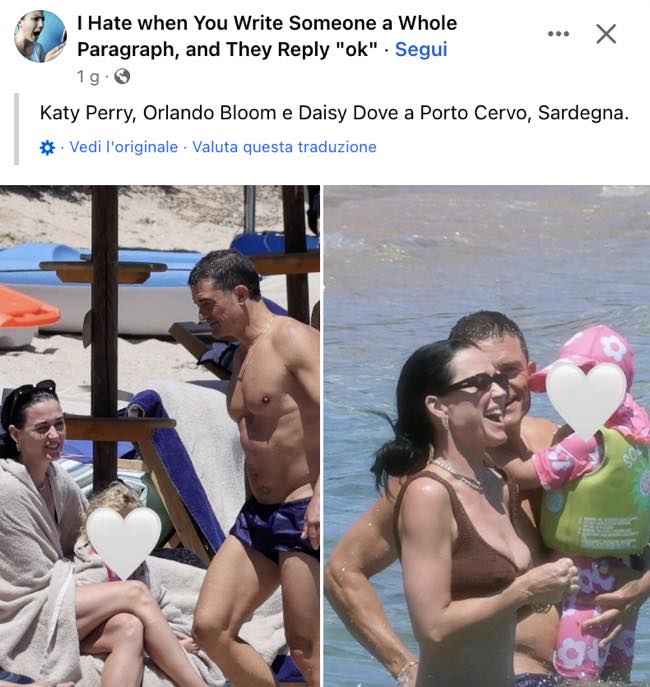 La coppia, insieme alla figlia Daisy di 4 anni, ha trascorso una giornata soleggiata in spiaggia, giocando in acqua e godendosi le vibrazioni mediterranee. Katy ha mostrato il suo fisico in forma in un costume tutto marrone, mentre Orlando ha sfoggiato un costume a pantaloncino e ovviamente è rimasto torso nudo.