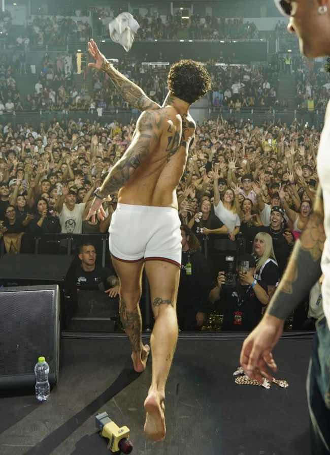 Tony Effe, noto rapper e membro del collettivo musicale Dark Polo Gang, ha recentemente attirato l’attenzione per un gesto audace durante un concerto. Alla fine della sua esibizione, ha deciso di spogliarsi e lanciare i suoi calzini al pubblico, creando un momento di grande entusiasmo tra i fan.